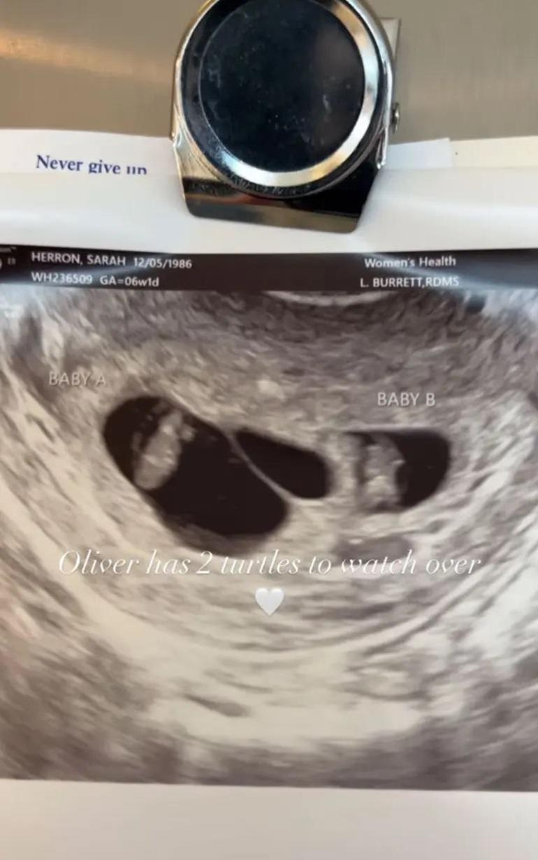 Oğlunun kaybı için hala yas tuttuğunu söyleyen Sarah Herron bu ultrason görüntüsüyle Oliver’ın ölümünden bir yıl sonra yeniden hamile olduğunu ve ikiz kız bebekleri olacağını duyurdu