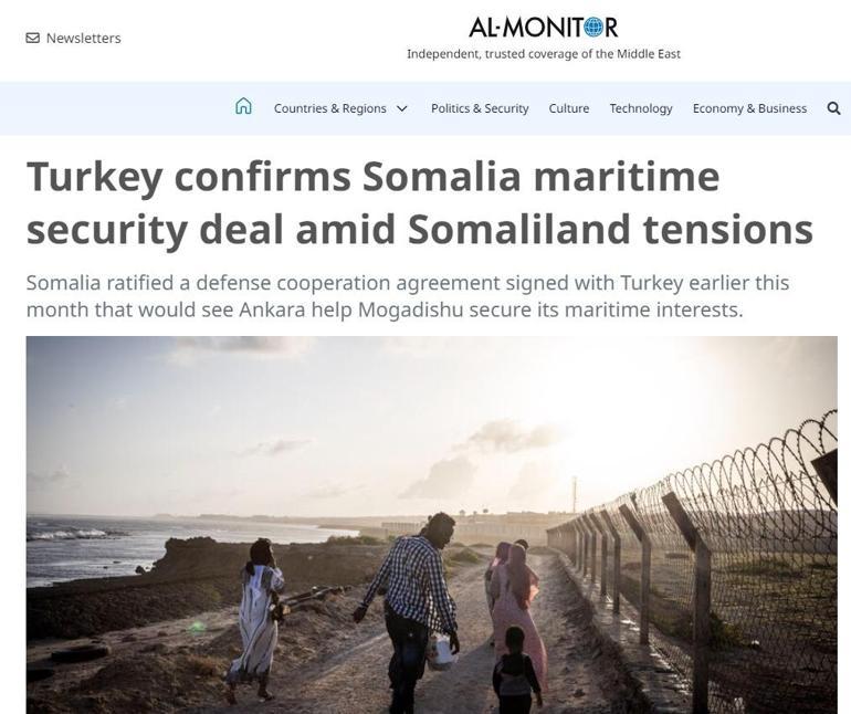 Al Monitor ‘Türkiye, Somaliland gerginliklerinin ortasında Somali deniz güvenliği anlaşmasını doğruladı’ manşetini attı.